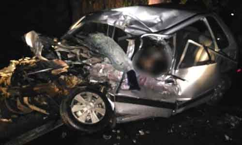 സംഭവമറിഞ്ഞെത്തിയ പരിസരവാസികള് കാര് വെട്ടിപ്പൊളിച്ച് രണ്ടുപേരെയും പുറത്തെടുത്തെങ്കിലും മരിച്ചിരുന്നു. ഇരുവരും ധര്മസ്ഥലയില് നിന്ന് വീട്ടിലേക്ക് വരുന്ന വേളയിലാണ് അപകടം. ഉപ്പിനങ്ങാടി പോലിസ് കേസെടുത്തു.