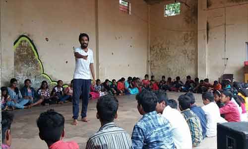 ക്യാമ്പ് ബ്ലോക്ക് പഞ്ചായത്ത് പ്രസിഡന്റ് ഓമന രാമചന്ദ്രന് ഉദ്ഘാടനം ചെയ്തു. ഇ.പി രാജഗോപാലന്, മണിപ്രസാദ്, ദിലീപ് ചിലങ്ക, ജയമോഹന്, തുടങ്ങിയവര് ക്ലാസെടുത്തു. ഉദയന് കാടകത്തിൻ്റെ ‘മരദൈവം’, കിരണ് ഇരിയണ്ണിയും സംഘവും അവതരിച്ച നാടന് പാട്ടുകള് ക്യാമ്പിനെ സജീവമാക്കി. ഹരിദാസ് കുണ്ടംകുഴി, ജയമോഹന്, അനീഷ് കുറ്റിക്കോല് എന്നിവര് അവതരിപ്പിക്കുന്ന ‘ചൂട് നാടകം’ വിപിന്രാജ് മടിക്കൈയുടെ ‘ഞാന് ആരാണ്’ നാടകവും അവതരിപ്പിക്കും. സുനില് യാദവ്, സുരേഷ് ബാബു, വേണു മാങ്ങാട്, സതീഷ്ബാബു, അരവിന്ദന്, പ്രകാശന്, അനില് രാമന്, മണി, സുമ തുടങ്ങിയവര് സാങ്കേതിക സഹായം നല്കുന്നു. ഞായറാഴ്ച ഉദുമ എം.എല്.എ കെ കുഞ്ഞിരാമന് സര്ട്ടിഫിക്കറ്റുകള് വിതരണം ചെയ്യും.