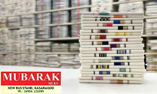 കാസര്കോട്: പെരുന്നാള് വിപണി ലക്ഷ്യമിട്ട് കാസര്കോട് പുതിയ ബസ് സ്റ്റാന്ഡ് മുബാറക്ക് സില്ക്സില് ഒരുക്കിയ മുണ്ടുകളുടെ വലിയ ശേഖരം ഉപഭോക്താക്കളില് കൗതുകമുണര്ത്തുന്നു.