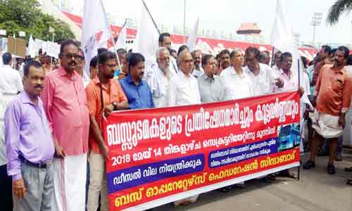ബസുടമകള് പ്രതിഷേധമാര്ച്ചും സെക്രട്ടറിയേറ്റ് ധര്ണയും നടത്തി