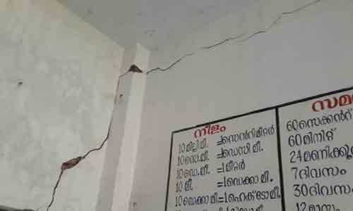 നേരത്തെ ചെറിയ തോതില് സ്കൂളിന്റെ ചുമരില് വിള്ളലുണ്ടായിരുന്നു. അവധി കഴിഞ്ഞ് ഇന്നലെ വീണ്ടും സ്കൂള് തുറന്നപ്പോഴാണ് കൂടുതല് ഭാഗത്ത് ചുമരുകള് പൊട്ടിയ നിലയില് കണ്ടത്. കഴിഞ്ഞ ദിവസം പെയ്ത മഴയിലാവാം കൂടുതല് ഭാഗത്ത് വിള്ളല് വീണത് എന്നാണ് സംശയിക്കുന്നത്. അപകടഭീഷണിയുയര്ത്തുന്ന കെട്ടിടത്തിനു സമീപത്തായി കുട്ടികള് നടക്കുകയും നില്ക്കുകയും ചെയ്യുന്നത് അധ്യാപകരരെ ഭീതിയിലാക്കുകയാണ്. അപകടാവസ്ഥയിലായ കെട്ടിടം പൊളിച്ചു മാറ്റി പുതിയത് നിര്മിക്കാനുള്ള നടപടി സ്വീകരിക്കണമെന്നാണ് സ്കൂള് പി.ടി.എയും അധ്യാപകരും നാട്ടുകാരും ആവശ്യപ്പെടുന്നത്.