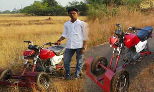 കാസര്കോട്: പാഴ് വസ്തുക്കളാല് എ.ടി.വി ബൈക്ക് നിര്മിച്ച് വിദ്യാര്ഥി ശ്രദ്ധേയനാകുന്നു. നീലേശ്വരം ബിരിക്കുളം സ്വദേശി കെ.ഡി ആദര്ശ് ഉപേക്ഷിക്കപ്പെട്ട ഇലക്ട്രോണിക്സ് വസ്തുക്കള് ഉപയോഗിച്ചാണ് എ.ടി.വി ക്വാഡ് ബൈക്ക് നിര്മിച്ചത്. ഇതിനായി ഹീറോ ഹോണ്ട ബൈക്കിന്റെ എന്ജിന്, ഓട്ടോറിക്ഷയുടേയും, സ്കൂട്ടിയുടേയും രണ്ടു വീതം ടയറുകള് തുടങ്ങിയവ ഉപയോഗിച്ചു. സ്വന്തമായി വരച്ചുണ്ടാക്കിയ മോഡല് അനുസരിച്ചാണ് നിര്മാണം തുടങ്ങിയത്. അഞ്ചു മാസത്തെ പരിശ്രമത്തിനൊടുവിലാണ് വിജയം കണ്ടത്.