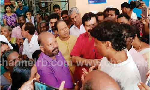 ബോബി ചെമ്മന്നൂർ അവശ്യ വസ്തുക്കൾ വിതരണം ചെയ്യുന്ന ക്യാമ്പിലേക്ക് മന്ത്രിമാരായ വി.എസ് സുനിൽ കുമാർ, സി.രവീന്ദ്രനാഥ്, ഇന്നസെന്റ് എം.പി, ദേവസ്സി എം.എൽ.എ എന്നിവർ എത്തിയപ്പോൾ ബോബി ചെമ്മന്നൂരുമായി സംസാരിക്കുന്നു.