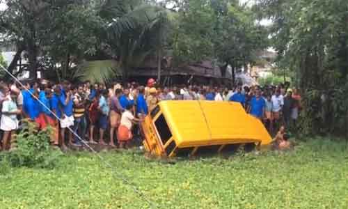 കൊച്ചിയില് ഡേകെയര് സെന്ററിൻ്റെ സ്കൂള് ബസ് ക്ഷേത്രക്കുളത്തിലേക്ക് മറിഞ്ഞു; കുട്ടികളും ആയയും അടക്കം മൂന്നുപേര് മരിച്ചു