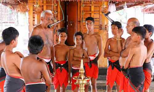 കണ്ടോത്ത് കൂര്മ്പ ഭഗവതി ക്ഷേത്രം ആണ് ആദരിച്ചത്. അവിവാഹിതനായ ഒരാള്ക്ക് ഇങ്ങനെയൊരു ബഹുമതി ലഭിക്കുന്നത് ആദ്യമായിരുന്നു. പിന്നീട് നെല്ലിക്കാതുരുത്തി കഴകം, രാമവില്യം കഴകം, കൊടക്കത്ത് കൊട്ടണച്ചേരി ക്ഷേത്രം, കുഞ്ഞിമംഗലം അണീക്കര പൂമാല ഭഗവതി ക്ഷേത്രം, കുണിയന് പറമ്പത്ത് ഭഗവതീ ക്ഷേത്രം, കരക്കക്കാവ് ഭഗവതീ ക്ഷേത്രം, തായിനേരി കുറിഞ്ഞി ക്ഷേത്രം, മുഴക്കോം ചെക്കിപ്പാറ ഭഗവതി ക്ഷേത്രം. കുട്ടമത്ത് പൂമാല ക്ഷേത്രം, പരവന്തട്ട ഉദയപുരം ക്ഷേത്രം, കൊഴമ്മല് മുണ്ട്യ ദേവസ്ഥാനം, കരിവെള്ളൂര് വാണിയില്ലം ക്ഷേത്രം തുടങ്ങി ഒട്ടേറേ ക്ഷേത്രങ്ങളില് തന്റെ തന്റെ പാണ്ഡിത്യം പ്രകടമാക്കിയിരുന്നു.