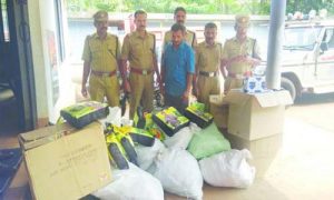 വിദ്യാനഗര്: മില്മാ ബൂത്തിന്റെ മറവില് ചെര്ക്കളയില് വന് ലഹരി വില്പ്പന നടക്കുന്നതായി വിവരം. വിദ്യാനഗര് പൊലീസ് നടത്തിയ റെയ്ഡില് നിരോധിത പാന് ഉല്പ്പന്നങ്ങളും സിഗരറ്റുകളും വില്പ്പന നടത്തി ലഭിച്ച പണവും അടക്കം മില്മാ ബൂത്ത് ഉടമയെ അറസ്റ്റ് ചെയ്തു. ചെര്ക്കളയില് മില്മാ ബൂത്ത് നടത്തിവരുന്ന കെട്ടുംകല്ല് സ്വദേശി ബേര്ക്ക ഹൗസില് അബ്ദുള്ഖാദറിന്റെ മകന് ബി മൊയ്തു(35) വിനെയാണ് വിദ്യാനഗര് സി.ഐ ബാബുപെരിങ്ങേത്ത്, എസ് ഐ എം.വി ശ്രീദാസ്, അഡീഷണല് എസ്.ഐ കെ.ആര് അമ്പാടി എന്നിവരുടെ നേതൃത്വത്തില് പൊലീസ് അറസ്റ്റ് ചെയ്തത്. മില്മാ ബൂത്തും ഒപ്പം ഉടമയുടെ വീടും റെയ്ഡ് ചെയ്തിരുന്നു. ഇരുപതിനായിരത്തില്പ്പരം പാക്കറ്റ് പാന് ഉല്പ്പന്നങ്ങളും അയ്യായിരം പാക്കറ്റ് സിഗരറ്റുകളും ആണ് ഇവിടെ നിന്നും കണ്ടെടുത്തത്. ലഹരി ഉല്പ്പന്നങ്ങള് വില്പ്പന നടത്തി ലഭിച്ച 67,930 രൂപയും പ്രതിയില് നിന്നും പൊലീസ് പിടിച്ചെടുത്തു. പാന് ഉല്പ്പന്നങ്ങള് കടത്താന് ഉപയോഗിച്ച നമ്പര് പ്ലേറ്റില്ലാത്ത ഓട്ടോ പൊലീസ് കസ്റ്റഡിയിലെടുത്തിട്ടുണ്ട്. ചൊവ്വാഴ്ച രാത്രി എട്ടുമണിയോടെയാണ് പൊലീസ് റെയ്ഡ് നടന്നത്.