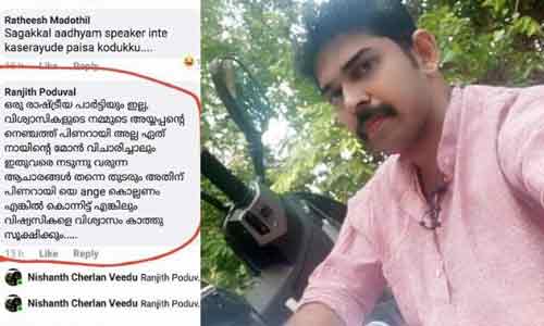 കാസര്‍കോട്: മുഖ്യമന്ത്രി പിണറായി വിജയനെതിരെ വധഭീഷണി മുഴക്കിയ യുവാവിനെതിരെ കേസ്. കാസര്‍കോട് ചീമേനി തിമിരി വലിയപൊയില്‍ ഉമ്മണത്തെ കെ.സി. രഞ്ജിത്തിനെതിരെയാണു ചീമേനി പൊലീസ് കേസെടുത്തത്. ഡിവൈഎഫ്ഐ ചെറുവത്തൂര്‍ ബ്ലോക്ക് സെക്രട്ടറി രജീഷ് വെളളാട്ടാണ് പരാതി നല്‍കിയത്. കോണ്‍ഗ്രസ് പ്രവര്‍ത്തകനാണ് രഞ്ജിത്ത്. ശബരിമലയില്‍ യുവതി പ്രവേശം, മുഖ്യമന്ത്രിയെ കൊന്നിട്ടായാലും തടയുമെന്ന് ഫേസ്ബുക്കിലൂടെ ഭീഷണി മുഴക്കിയതിനാണ് കേസ്. മറ്റൊരാളുടെ ഫേസ്ബുക്ക് പോസ്റ്റിലാണ് രഞ്ജിത്ത് പൊതുവാള്‍ എന്ന പേരുള്ള ഫേസ്ബുക്ക് അക്കൗണ്ടില്‍ നിന്നും പ്രകോപനം സൃഷ്ടിച്ചു കൊണ്ടുള്ള കമന്റ് ചെയ്തത്. സെക്ഷന്‍ 163 ബോധപൂര്‍വ്വം കലാപം സൃഷ്ടിക്കാനുള്ള നീക്കം, 506 ഐപിസി, കെ പി ആക്ട് 120 എച്ച് നവമാധ്യമം വഴി കൊല്ലുമെന്ന് ഭീഷണിപ്പെടുത്തല്‍ എന്നീ വകുപ്പുകള്‍ പ്രകാരമാണ് യുവാവിനെതിരേ കേസെടുത്തിരിക്കുന്നത്.