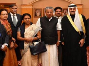 മനാമ: ബഹ്റൈന് കിരീടാവകാശി പ്രിന്സ് സല്മാന് ബിന് ഹമദ് അല് ഖലീഫയുടെ അതിഥിയായി എത്തിയ മുഖ്യമന്ത്രി പിണറായി വിജയന് രാജകീയ സ്വീകരണം. കിരീടാവകാശിയുടെ അതിഥിയായി ഒരു മുഖ്യമന്ത്രി എത്തുന്നത് ഇത് ആദ്യമായാണ്. എന്നാല് മുഖ്യമന്ത്രിയായതിനു ശേഷമുള്ള പിണറായിയുടെ ആദ്യ ബഹ്റൈന് സന്ദര്ശനമാണിത്. ബഹ്റൈന് കിരീടാവകാശിയുടെ കോര്ട്ട് പ്രസിഡന്റ് ഷെയ്ഖ് ഖലീഫ ബിന് ദായിജ് അല് ഖലീഫയുടെയും ഇന്ത്യന് അംബാസിഡര് അലോക് കുമാര് എന്നിവരുടെ നേതൃത്വത്തിലാണ് സ്വീകരണം.