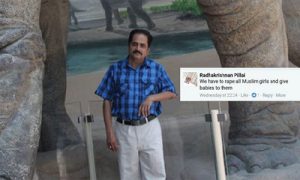 ഇതിന് താഴെയാണ് രാധാകൃഷ്ണന്റെ വിവാദ കമന്റ്. കമന്റ് ശ്രദ്ധയില്പെട്ടതോടെ സോഷ്യല് മീഡിയയില് രാധാകൃഷ്ണനെതിരെ രൂക്ഷ വിമര്ശനമാണ് ഉയരുന്നത്. മതസ്പര്ധ വളര്ത്തുന്ന, ബലാത്സംഗത്തിന് ആഹ്വാനം ചെയ്യുന്ന പ്രകോപനപരമായ പ്രസംഗത്തിന്റെ പരിധിയില് വരുന്ന 153 എ അനുസരിച്ചുള്ള കുറ്റമാണ് രാധാകൃഷ്ണന് ചെയ്തതെന്നും ഇയാള്ക്കെതിരെ കേസ് രജിസ്റ്റര് ചെയ്യണമെന്നും സോഷ്യല് മീഡിയയില് ആവശ്യമുയരുന്നുണ്ട്.