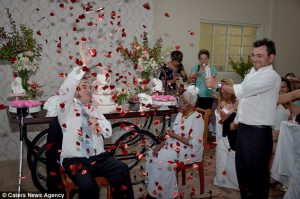 ബ്രസീല്: അത്ഭുതപ്പെടേണ്ട സുഹൃത്തേ… കാര്യം സത്യമാണ്! ഈ അപൂര്വ്വ വിവാഹ നിശ്ചയം നടക്കുന്നത് ബ്രസീലിലാണ്. ലോകത്തിലെ ഏറ്റവും പ്രായം കൂടിയ വധുവായ വാള്ഡെമിറ റോഡ്രിഗസ് ഡ ഒലിവേറയുടെ വിവാഹ നിശ്ചയമാണ് ഇത്. വരന് 66 വയസ്സുള്ള അപാരെസിഡോ ഡിയാസ് ജേക്കബ്. ഇരുവരും മൂന്ന് വര്ഷമായി തെക്ക് കിഴക്കന് ബ്രസീലിലെ പിരാസുന്ഗുനയിലെ ഒരു വൃദ്ധ സദനത്തിലാണ് താമസം.