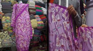 വാരണാസി: വസ്ത്രവ്യാപാരിയുടെ സാരി തന്ത്രം..വെറൈറ്റി സാരി പോലും ഇപ്പോള് മോദി മയം!. നോട്ടുനിരോധനത്തോടനുബന്ധിച്ച് സ്റ്റാറായി മാറിയ പ്രധാനമന്ത്രി നരേന്ദ്ര മോദിയുടെ സ്വന്തം തട്ടകമായ ഗുജറാത്തില് നിന്നു പുതിയൊരു വിപണന തന്ത്രത്തിന്റെ വാര്ത്ത. വെറും 160 രൂപ മുടക്കിയാല് ‘2000 രൂപയുടെ സാരി’! എന്നാല് പക്ഷെ ഇത് രണ്ടായിരം രൂപയുടെ സാരിയല്ല. നോട്ടുനിരോധനത്തിനു ശേഷം പുറത്തിറക്കിയ പുതിയ 2000 രൂപ നോട്ടിന്റെ ചിത്രം അച്ചടിച്ചിട്ടുള്ള സാരിയാണ് സൂററ്റിലെ ഒരു വസ്ത്രവ്യാപാരി പുറത്തിറക്കിയിട്ടുള്ളത്.