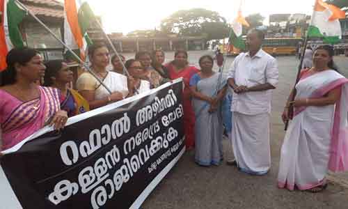 കണ്ണൂര്: റഫാല് അഴിമതി സംഭവത്തില് കള്ളന് മോദി രാജിവെക്കണമെന്നാവശ്യപെട്ട് മഹിളാ കോണ്ഗ്രസ് കണ്ണൂര് ജില്ലാ കമ്മിറ്റി യുടെ നേതൃത്വത്തില് കണ്ണൂരില് പ്രകടനം നടത്തി. തുടര്ന്ന് നടന്ന പ്രതിഷേധ യോഗം ഡി.സി.സി ജനറല് സെക്രട്ടറി എം.പി വേലായുധന് ഉദ്ഘാടനം ചെയ്തു. ജില്ലാ പ്രസിഡന്റ് രജനി രമാനന്ദ് അധ്യക്ഷനായി.