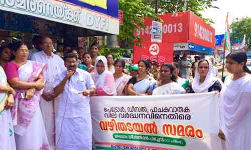 കണ്ണൂര്: പെട്രോളിയം ഉല്പ്പന്നങ്ങള്ക്കും പാചക വാതകത്തിനും വിലകള് വര്ദ്ധിപ്പിച്ച് കൊണ്ട് ജീനജീവിതം നരകതുല്യമാക്കുന്ന സമീപനമാണ് നരേന്ദ്രമോദിയുടെ നേതൃത്വത്തിലുള്ള സര്ക്കാര് ചെയ്യുന്നതെന്ന് കണ്ണൂര് ഡി.സി.സി പ്രസിഡന്റ് സതീശന് പാച്ചേനി പറഞ്ഞു. മഹിളാ കോണ്ഗ്രസ് കണ്ണൂര് ജില്ലാ കമ്മിറ്റിയുടെ ആഭിമുഖ്യത്തില് കാല്ടെക്സില് നടന്ന റോഡ് ഉപരോധ സമരം ഉദ്ഘാടനം ചെയ്തു സംസാരിക്കുകയായിരുന്നു അദ്ദേഹം. ഉമ്മന്ചാണ്ടിമുഖ്യമന്ത്രിയായ കഴിഞ്ഞ യു.ഡി.എഫ് സര്ക്കാരിന്റെ കാലത്ത് പെട്രോളിയം ഉല്പ്പന്നങ്ങള്ക്ക് വില കേന്ദ്ര സര്ക്കാര് വര്ദ്ധിപ്പിച്ചപ്പോള് സംസ്ഥാനത്ത് നികുതി ഇനത്തില് ലഭിക്കേണ്ടിയിരുന്ന തുക വേണ്ടെന്ന വെച്ച് ജനങ്ങളുടെ മേല് വരുമായിരുന്ന അധിക ബാധ്യത വെട്ടിക്കുറച്ച സംഭവം സര്ക്കാരുകള് പാഠമാക്കണമെന്നും പാച്ചേനി പറഞ്ഞു.