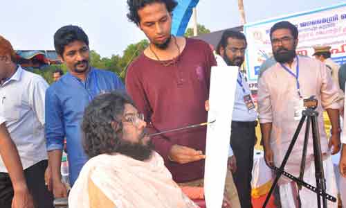 ഉപ്പള: മഞ്ചേശ്വരം ജനമൈത്രി പോലീസിൻ്റെ നേതൃത്വത്തില് ഉപ്പള മണ്ണംകുഴി ബിച്ചു ബോയ്സ് ആര്ട്സ് ആന്റ് സ്പോര്ട്സ് ക്ലബിന്റെ സഹകരണത്തോടെ മണ്ണംകുഴി സ്റ്റേഡിയത്തില് ലഹരി വിപത്തിനെതിരെ ചിത്ര ലഹരി സംഘടിപ്പിച്ചു. ജില്ലാ കലക്ടര് കെ.ജീവന് ബാബു ഉദ്ഘാടനം ചെയ്തു. പ്രശസ്ത മൗത്ത് പെയിന്റര് കുഞ്ഞിമംഗലം ഗണേഷ് കുമാര് മുഖ്യാഥിതിയായിരുന്നു. ജില്ലാ പഞ്ചായത്ത് സ്റ്റാന്റിങ്ങ് കമ്മറ്റി ചെയര്മാന് ഹര്ഷാദ് വൊര്ക്കാടി അദ്ധ്യക്ഷത വഹിച്ചു.