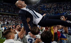 പതിനെട്ട് മാസത്തിനിടെ സിദാന് റയലിനെ യുവേഫ ചാമ്പ്യന്സ് ലീഗ് ജേതാക്കളാക്കി, ഇപ്പോളിതാ ലാ ലിഗ ജേതാക്കളാക്കി. തുടരെ രണ്ടാം സീസണിലും സിദാന്റെ ടീം ചാമ്പ്യന്സ് ലീഗ് ഫൈനിലെത്തിയിരിക്കുന്നു. ജൂണ് നാലിന് കാര്ഡിഫില് യുവെന്റസാണ് റയലിന്റെ ചാമ്പ്യന്സ് ലീഗ് ഫൈനല് എതിരാളി .താരമെന്ന നിലയിലും കോച്ചെന്ന നിലയിലും റയലിന് ചാമ്പ്യന്സ് ലീഗും ലാ ലിഗ കിരീടവും നേടിക്കൊടുക്കുന്ന ആദ്യ വ്യക്തിയാണ് സിദാന്…