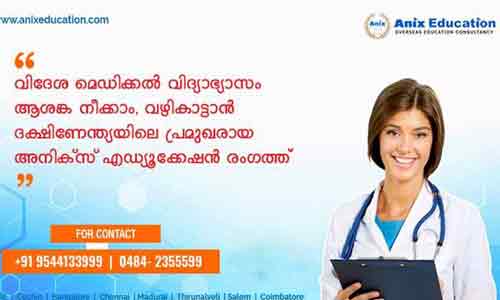 12 വര്ഷമായി ഉക്രൈനിയിലെ സര്ക്കാര് യൂണിവേഴ്സിറ്റികളില് ആയിരത്തിലധികം വിദ്യാര്ഥികള്ക്ക് ഉന്നതപഠനത്തിന് അവസരമൊരുക്കിയ അനിക്സ് എഡ്യൂക്കേഷന് ഉക്രെയ്ന്, ജോര്ജിയ തുടങ്ങിയ രാജ്യങ്ങളിലെ 30 ഓളം സര്ക്കാര് യൂണിവേഴ്സിറ്റികളിലെ അംഗീകൃത ഏജന്സിയാണ്. നീണ്ടവര്ഷത്തെ മികച്ച സേവനം പരിഗണിച്ച് അനിക്സ് എഡ്യൂക്കേഷന് മാനേജിംഗ് ഡയറക്ടര് അലക്സ് തോമസിന് ഉക്രൈന് യൂനിവേഴ്സിറ്റികളുടെ കോ- ഓര്ഡിനേറ്റര് പദവിയും യൂണിവേഴ്സിറ്റി അധികൃതര് നല്കിയിട്ടുണ്ട്. എല്ലാ വര്ഷവും ഉക്രെയ്ന്, ജോര്ജിയ തുടങ്ങിയ രാജ്യങ്ങളിലെ സര്ക്കാര് യൂണിവേഴ്സിറ്റികളില് നിന്നും പ്രതിനിധികള് നേരിട്ടെത്തി കേരളത്തിലെ വിവിധ കേന്ദ്രങ്ങളില് മലയാളി വിദ്യാര്ഥികള്ക്കും രക്ഷിതാക്കള്ക്കും വിദേശപഠനത്തിന്റെ സാധ്യകളും ഇവരുടെ ആശങ്കകളും പരിഹരിക്കാന് അനിക്സ് എഡ്യുക്കേഷനുമായി സഹകരിച്ച് സെമിനാറുകളും സ്പോര്ട്ട് അഡ്മിഷന് പ്രോപ്രോഗ്രാമുകളും സംഘടിപ്പിക്കുന്നു. ഡല്ഹി, തമിഴ്നാട്, ഹൈദരബാദ്, കേരളം, കര്ണ്ണാടക തുടങ്ങിയ സംസ്ഥാനങ്ങളിലും മിഡില് ഈസ്റ്റില് ദുബൈയിലും അനിക്സിന് ഓഫീസുകള് പ്രവര്ത്തിക്കുന്നു. കൂടുതല് വിവരങ്ങള്ക്ക് ഫോണ്. 0484 2355599, 9544133999, 9846208789 നമ്പറുകളില് ബന്ധപ്പെടുക. വെബ്സൈറ്റ് www.anixeducation.com, email: anixeducation@gmail.com