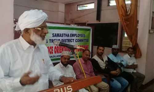 ജില്ലാ പ്രസി മുഹമ്മദ് കുട്ടി നെല്ലിക്കുന്ന് അധ്യക്ഷനായി. സലാം ഫൈസി, ഇര്ഷാദ് ഹുദവി ബെദിര, സിറാജുദ്ദീന് ഖാസി ലേന്, ഷഫീഖ് തളങ്കര പ്രസംഗിച്ചു. റാഷിദ് തൃക്കരിപ്പുര് ബാസിം ഗസ്സാലി ക്ലാസെടുത്തു.