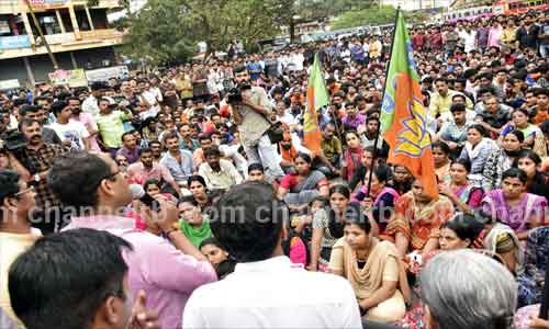 കാസര്കോട്: ലക്ഷക്കണക്കിന് വരുന്ന ശബരിമല വിശ്വാസികളുടെ വിശ്വാസത്തെ സംരക്ഷിക്കാന് സംസ്ഥാന സര്ക്കാര് തയ്യാറാകണമെന്ന് ബി.ജെ.പി ജില്ലാ പ്രസിഡണ്ട് കെ.ശ്രീകാന്ത് പറഞ്ഞു. വിശ്വാസം സംരക്ഷിക്കാന് യുവമോര്ച്ച തെരുവിലിറങ്ങും ശബരിമലയെ തകര്ക്കാനുളള നീക്കം അനുവദിക്കില്ല എന്നീ മുദ്രാവാക്യങ്ങളുയര്ത്തി യുവമോര്ച്ച് ജില്ലാ കമ്മറ്റി കാസര്കോട് സംഘടിപ്പിച്ച പ്രതിഷേധ സംഗമം ഉദ്ഘാടനം ചെയ്യുകയായിരുന്നു അദ്ദേഹം. കറന്തക്കാട് നിന്നാരംഭിച്ച പ്രകടനത്തില് ആയിരങ്ങള് അണിചേര്ന്നു. കാസര്കോട് പുതിയ ബസ്റ്റാന്റ് പരിസരത്ത് നടന്ന സമാപനസമ്മേളനത്തില് ദേവസ്വം മന്ത്രി കടകംപള്ളി സുരേന്ദ്രന്റെ കോലം കത്തിച്ചു.