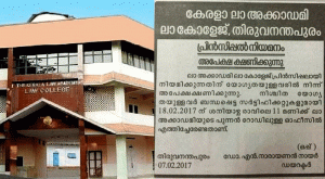 നിശ്ചത യോഗ്യതയുള്ളവര് ബന്ധപ്പെട്ട സര്ട്ടിഫിക്കറ്റുകളുമായി 18.02.2017ന് ശനിയാഴ്ച രാവിലെ 11 മണിക്ക് ലോ അക്കാദമിയുടെ പുന്നന് റോഡിലുള്ള ഓഫീസില് എത്തിച്ചേരേണ്ടതാണ് എന്നാണ് പത്ര പരസ്യം. എന്നാല് ഒഴിവ് താല്ക്കാലികമാണോ സ്ഥിരമാണോ എന്ന് വ്യക്തമാക്കുന്നില്ല. നിലവിലെ പ്രിന്സിപ്പല് ലക്ഷ്മി നായര് അഞ്ച് വര്ഷത്തേക്ക് മാറി നില്ക്കുന്ന സാഹചര്യത്തിലാണ് പുതിയ പ്രിന്സിപ്പലിനെ തേടിയുള്ള പത്ര പരസ്യം. എന്തായാലും വിവാദങ്ങളിലൂടെയും സമര കോലാഹലങ്ങളിലൂടെയും കുപ്രസിദ്ധി നേടിയ ഈ നിയമ കലാലയത്തിന്റെ പ്രിന്സിപ്പല് ആകാനുള്ള നിയോഗം ആര്ക്കാണെന്ന് കണ്ടറിയുക തന്നെ വേണം!