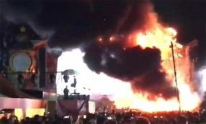 ഏകദേശം 22,000 ആളുകൾ തടിച്ചുകൂടിയ പരിപാടിയിൽ നിന്നും ആളുകളെ സമയോചിതമായി ഒഴിപ്പിക്കുകയായിരുന്നു. തീപിടുത്തം ഉണ്ടായ ഉടന് തന്നെ ആളുകളെ മാറ്റിയതിനാല് വന് അപകടം ഒഴിവായി. അപകടകാരണം വ്യക്തമല്ല. എന്നാൽ സംഗീതോപകരണങ്ങളിൽനിന്നുണ്ടായ ഷോട്ട് സർക്യുട്ട് തീ പിടുത്തതിന് കാരണമായി എന്നും പറയപ്പെടുന്നു.
