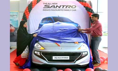 കോഴിക്കോട്/ കണ്ണൂർ/ കാസർകോട്: ദക്ഷിണ കൊറിയൻ വാഹന നിർമാതാക്കളായ ഹ്യൂണ്ടായ് മോട്ടോർ ഇന്ത്യ ലിമിറ്റഡ് (എച്ച്.എം.ഐ.എൽ) അവതരിപ്പിച്ച പുതിയ മോഡൽ കാറാണ് ‘സാൻട്രോ.’ ഇരുപത് വർഷം മുമ്പ് അവതരിപ്പിച്ച സാൻട്രോ എന്ന പേര് തന്നെ പുത്തൻ ഹാച്ച്ബാക്കിനും നല്കാൻ കമ്പനിയെ പ്രേരിപ്പിച്ചത് വൻ ജനപിന്തുണയാണ്. പേര് കണ്ടെത്താനായി ഹ്യൂണ്ടായ് ഇന്ത്യ കഴിഞ്ഞ മാസം മത്സരം സംഘടിപ്പിച്ചിരുന്നു. നാലുലക്ഷം പേരിൽ രണ്ടുലക്ഷത്തിലധികവും പുതിയ കാറിനായി നിർദ്ദേശിച്ചത് ‘സാൻട്രോ’ എന്ന പഴയ പേരുതന്നെയാണ്. എ.എച്ച്.ടു എന്ന കോഡ് നാമത്തിൽ വികസിപ്പിച്ച കാറിൻ്റെ പ്രീബുക്കിങ്ങിന് ഒക്ടോബർ 10 ന് ആരംഭിച്ചിരുന്നു. കഴിഞ്ഞ ദിവസം വിപണിയിലെത്തിയ പുതിയ സാൻട്രോ ആപ്കോ ഹ്യൂണ്ടായ് ഷോറൂമുകളിൽ കാർ ഇതിനകം ശ്രദ്ധയാകർഷിച്ചിട്ടുണ്ട്. കാസർകോട് ഷോറൂമിൽ ചെങ്കള പഞ്ചായത്ത് പ്രസിഡന്റ് ഷാഹിന സലിം ലോഞ്ചിങ് നിർവഹിച്ചു. ആപ്കോ ഹ്യൂണ്ടായ് കാസർകോട് ഡീലർഷിപ്പ് ഹെഡ് സിറാജ് പി.ടി ചടങ്ങിന് നേതൃത്വം നൽകി.