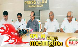 കാസര്കോട്: സി.പി.എം 22-ാംപാര്ട്ടികോണ്ഗ്രസ്സിന്റെ ഭാഗമായി ജനുവരി 8,9,10 തീയതികളില് നടക്കുന്ന ജില്ലാസമ്മേളനത്തിന്റെ ഒരുക്കം പൂര്ത്തിയായതായി സംഘാടകര് വാര്ത്താസമ്മേളനത്തില് അറിയിച്ചു. ജനുവരി 8ന് രാവിലെ 9.30നു മുതിര്ന്ന നേതാവ് എ.കെ.നാരായണന് പതാക ഉയര്ത്തുന്നതോടെ സമ്മേളനത്തിന് തുടക്കം കുറിക്കും. ജില്ലയിലെ 23,301പാര്ട്ടിയംഗങ്ങളെ പ്രതിനിധീകരിച്ച് ഡി.സി അംഗങ്ങള് ഉള്പ്പെടെ 290 പ്രതിനിധി സഖാക്കള് സമ്മേളനത്തില് പങ്കെടുക്കും. പ്രതിനിധി സമ്മേളനം കാസര്കോട് ടൗണ്ഹാളിലെ വി.വി.ദക്ഷിണാമൂര്ത്തി നഗറില് പി.ബി.അംഗവും സംസ്ഥാന സെക്രട്ടറിയുമായ കോടിയേരി ബാലകൃഷ്ണന് ഉദ്ഘാടനം ചെയ്യും.