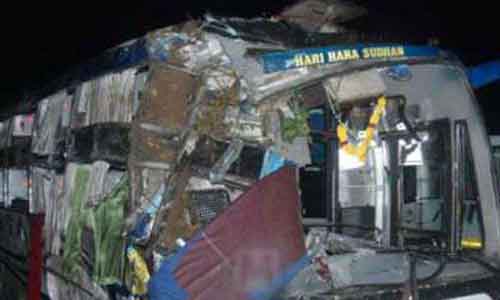ആറ് പേര് മലയാളികള് മലയാളികളാണെന്നാണ് സൂചന. ബെംഗളുരുവില്നിന്ന് തിരുവല്ലയിലേക്ക് പോവുകയായിരുന്ന യാത്രാ ട്രാവല്സിന്റെ ബസാണ് അപകടത്തില്പ്പെട്ടത്.