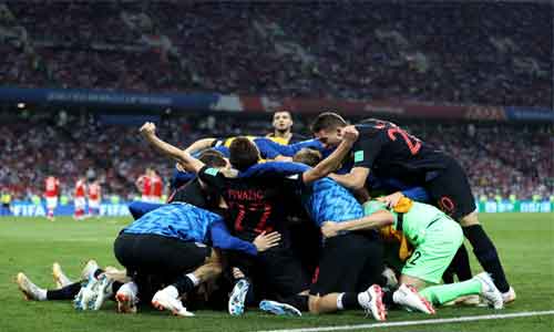 സെമിയില് ക്രൊയേഷ്യ ഇംഗ്ലണ്ടിനെ നേരിടും. ലോകകപ്പില് ഇതുവരെ കണ്ടതില് ഏറ്റവും നാടകീയമായ മല്സരത്തില്, ക്രൊയേഷ്യന് താരങ്ങളുടെ മല്സരപരിചയവും വ്യക്തിഗത മികവുമാണ് ഷൂട്ടൗട്ടില് അവരെ അനുഗ്രഹിച്ചത്. റഷ്യന് താരം ഫ്യോദോര് സ്മോളോവ് എടുത്ത ഷൂട്ടൗട്ടിലെ ആദ്യ കിക്ക് ക്രൊയേഷ്യന് ഗോളി ഡാനിയല് സുബാസിച്ച് തടുത്തു.ക്രൊയേഷ്യയുടെ രണ്ടാം കിക്കെടുത്ത മാറ്റിയോ കൊവാച്ചിച്ചിന്റെ ഷോട്ട് റഷ്യന് ഗോളി ഇഗോര് അകിന്ഫീവ് കൂടി തടുത്തതോടെ ഷൂട്ടൗട്ടിലും നാടകീയതയായി. എന്നാല്, റഷ്യയുടെ മൂന്നാം കിക്ക് എടുത്ത, മാരിയോ ഫെര്ണാണ്ടസിന്റെ ഷോട്ട് പുറത്തേക്കു പോയതോടെ കളി ക്രൊയേഷ്യക്കാരുടെ പക്കലായി. പിന്നീടാരും കിക്കുകള് പാഴാക്കാതെ വന്നതോടെ 4-3നു ക്രൊയേഷ്യന് വിജയം യാഥാര്ഥ്യമായി. ആതിഥേയര് എന്ന നിലയ്ക്കു ലോകകപ്പിനു യോഗ്യത നേടിയ റഷ്യ, ഫിഫ റാങ്കിങ്ങില് 70-ാം സ്ഥാനക്കാരാണു തങ്ങളെന്നു മറന്ന പോരാട്ടവീര്യമാണു കളത്തില് കാഴ്ചവച്ചത്.