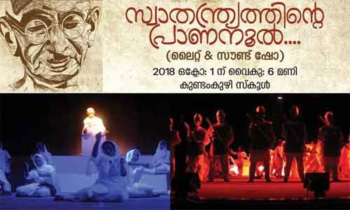 കാസർകോട്: സമാനതകളില്ലാത്ത ഐതിഹാസിക മുന്നേറ്റങ്ങളുടെ ആകെത്തുകയായ സ്വാതന്ത്ര്യത്തിൻ്റെ പ്രക്ഷോഭ ഓർമകൾക്ക് രംഗാവിഷ്ക്കാരം ഒരുക്കുന്നു. മഹാത്മാഗാന്ധിയുടെ നൂറ്റമ്പതാം ജന്മവാർഷികമായ ഗാന്ധിജയന്തിദിന തലേദിവസമായ ഒക്ടോബർ ഒന്നിന് വൈകിട്ട് ആറ് മണിക്ക് കുണ്ടംകുഴി ഗവ:ഹയർ സെക്കണ്ടറി സ്കൂൾ അങ്കണത്തിൽ ഇരുന്നൂറ്റി അമ്പതോളം കുട്ടികൾ അരങ്ങിൽ സ്വാതന്ത്ര്യത്തിൻ്റെ ‘പ്രാണനൂൽ’ എന്ന ലൈറ്റ് ആൻഡ് സൗണ്ട് ഷോ രംഗത്തെത്തിക്കും. ബേഡഡുക്ക ഗ്രാമപഞ്ചായത്തും സ്കൂൾ പി.ടി.എകളും നാട്ടകം ട്രസ്റ്റും ലിറ്റിൽ തിയേറ്ററുമാണ് സംഘാടകർ.