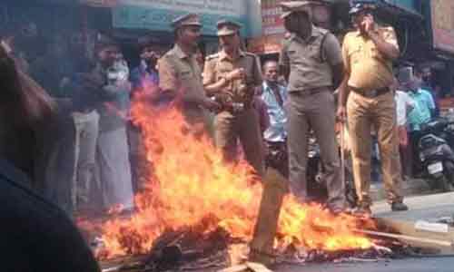 ചില്ല് തകര്ന്ന് ഡ്രൈവര് ഷനോജിനു പരിക്കേറ്റു. ബൈക്കില് എത്തിയ രണ്ടു പേരാണ് കല്ല് എറിഞ്ഞതെന്ന് പൊലീസ് വ്യക്തമാക്കി. കണ്ണൂരും പത്തനംതിട്ടയും തൃശൂരും പാലക്കാടും കെ.എസ്.ആര്.ടി.സി ബസുകള്ക്ക് നേരെ കല്ലെറിഞ്ഞു. അന്യസംസ്ഥാനത്ത് നിന്നുള്ള ബസുകള്ക്ക് നേരെയും ആക്രമണമുണ്ടായി. ടയര് കത്തിച്ചും കല്ലും മരക്കഷ്ണങ്ങളും നിരത്തിയും പ്രതിഷേധക്കാര് വഴിതടഞ്ഞു. വഴി തടഞ്ഞും കടകളടപ്പിച്ചും ബസുകള്ക്ക് നേരെ കല്ലേറ് നടത്തിയും പ്രതിഷേധം ശക്തമാക്കുകയാണ്. പാലക്കാടും തൃശ്ശൂരും കാസര്കോട്ടും കണ്ണൂരും കെ.എസ്.ആര്.ടി.സി ബസുകള് സര്വ്വീസ് നടത്തുന്നില്ല. ബംഗലൂരുവില് നിന്നും വന്ന കെ.എസ്.ആര്.ടി.സി ബസുകള് കോട്ടയത്തേക്കും മൂന്നാറിലേക്കും പൊലീസ് സംരക്ഷണയോടെ യാത്ര തുടരുന്നുണ്ട്.