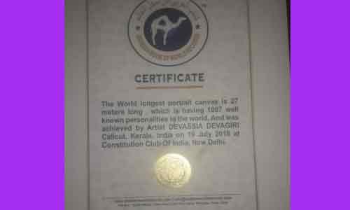അറേബ്യന് വേള്ഡ് റെക്കോഡ് പ്രതിനിധികളായ ഗിന്നസ് ദിലീപ്, യാസര് അറഫാത്ത്, സലിം എന്നിവരും ചടങ്ങില് പങ്കെടുത്തു. കഴിഞ്ഞ 40 വര്ഷത്തിലേറെയായി പോര്ട്രൈറ്റ് രംഗത്തും ശില്പ്പ നിര്മ്മാണ രംഗത്തും ശ്രദ്ധേയനായ ദേവസ്യ ദേവഗിരി സാവിയോ ഹയര് സെക്കണ്ടറി സ്കൂളിലെ ചിത്രകലാ അദ്ധ്യാപക വൃത്തിയില് നിന്നും കഴിഞ്ഞ മാര്ച്ചിലായിരുന്നു വിരമിച്ചത്. 2500 ലേറെ ഓയില് പെന്ഡിറ്റിംഗ് ഇതിനകം ചെയ്തു കഴിഞ്ഞിട്ടുണ്ട്. ക്രിസ്ത്യന് കോളേജിലെ ഗാന്ധി പ്രതിമ ഉള്പ്പടെ നിരവധി ശില്പങ്ങള് നിര്മ്മിച്ച ശ്രദ്ധേയനായിരുന്നു. കോഴിക്കോട് യൂണിവേഴ്സല് ആര്ട്സില് നിന്നും ചിത്രകലാ പഠനം പൂര്ത്തിയാക്കിയിരുന്നു. ഡല്ഹി, കാശ്മീര്, കന്യകുമാരി തുടങ്ങിയ സ്ഥലങ്ങളില് ചിത്രപ്രദര്ശനം നടത്തിയിട്ടുണ്ട്. ലോകത്തിലെ ഏറ്റവും നീളം കൂടിയ പെന്ഡ്രോയിങ് കൂടുതല് മെച്ചപ്പെടുത്തി ഗിന്നസിലേക്ക് ഉള്പ്പെടുത്താനുള്ള തയാറെടുപ്പിലാണ് ദേവസ്യ ദേവഗിരി ഇപ്പോള്.
