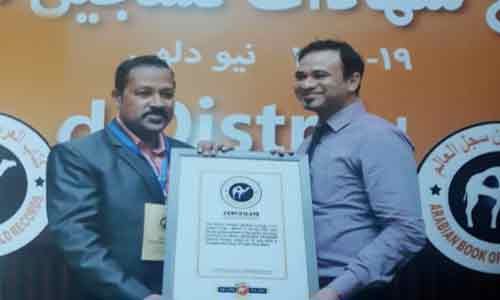കോഴിക്കോട് : ഒറ്റ ക്യാ ന്വാസില് ലോകത്തിലെ ആയിരത്തി ഏഴു പ്രതിഭകളെ പെന് ഡ്രോയിങ് വരച്ച ചിത്രകാരന് അറേബ്യന് ബുക്ക് ഓഫ് വേള്ഡ് റെക്കോര്ഡ്. ശില്പിയും റിട്ടയേര്ഡ് അദ്ധ്യാപകനുമായ ദേവസ്യ ദേവഗിരിക്കാണ് അംഗീകാരം ലഭിച്ചത്. 37 മീറ്റര് നീളമുള്ള ക്യാന്വാസില് എബ്രഹാം ലിങ്കണ്, ഗാന്ധിജി, ഇ.എം.എസ് തുടങ്ങി ലോകത്തില് വിവിധ മേഖലകളില് സ്വാധീനം ചെലുത്തിയ വ്യക്തിത്വങ്ങളെയാണ് ദേവസ്യ ജെല് പേനകൊണ്ട് വരച്ചത്. ഇക്കഴിഞ്ഞ ദിവസം ഡല്ഹിയിലെ കോണ്സ്റ്റിറ്റുഷന് ഹാളില് നടന്ന ചടങ്ങില് പ്രശസ്ത സാമൂഹ്യ പ്രവര്ത്തകന് ഡോ. ഖഫീല് ഖാന് ദേവസ്യ ദേവഗിരിക്ക് ക്ക് അറേബ്യന് വേള്ഡ് റെക്കോര്ഡിന്റെ സര്ട്ടിഫിക്കറ്റ് സമ്മാനിച്ചു.