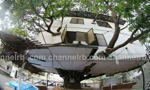 ഉഡായിപൂര്‍: സാധാരണയായി വീടു പണിയാന്‍ മരം മുറിക്കുന്നത് പതിവാണ്. എന്നാല്‍ ഇതില്‍ നിന്നും വ്യത്യസ്ഥമായി മരത്തിന്റെ ഒരു ചില്ലപോലും മുറിക്കാതെ മരത്തിനു മുകളില്‍ മൂന്നു നില മാളിക പണിതെങ്കിലെന്ത് സംഭവിക്കും. രാജസ്ഥാനിലെ 87 കാരനായ എഞ്ചിനീയര്‍ കെ.പി സിങ്ങ് വ്യത്യസ്തമായമായ ഒരു വീട് പണിതിരിക്കുകയാണ്. 1970 ഐ.ഐ.ടി ബാച്ചുകാരനായ കെ.പി സിങ്ങ് 1999 ലാണ് വീടു പണിതത്. ഉദയ്പൂരിലെ ചിത്രാക്കോട്ട് നഗറിലെ ഈ വസതി 18 വര്‍ഷങ്ങള്‍ക്ക് ശേഷവും കേടുപാടുകള്‍ ഒന്നും കൂടാതെതന്നെ മരത്തില്‍ തുടരുകയാണ്. വീടുകളില്‍ സാധാരണയുള്ള അടുക്കള, ബാത്ത് റൂം, കിടപ്പുമുറികള്‍ എന്നിവയെല്ലാം മരവീട്ടിലും ഉണ്ട്.എന്നാല്‍ മുറികളുടെ ഒരു കോണില്‍ നിന്നും മറ്റൊരു കോണിലേക്ക് എത്തുന്ന മരക്കൊമ്പുകള്‍ ഈ വീടിന്റെ മാത്രം പ്രത്യേകതയാണ്.വായു ചലന ശാസ്ത്രപ്രകാരമാണ് വീടിന്റെ രൂപകല്‍പ്പന നടത്തിയിട്ടുള്ളതെന്ന്് സിങ് പറയുന്നു. വീടു പണിത ശേഷം നിരവധി തവണ ശക്തമായ കാറ്റ് വീശിയടിച്ചിട്ടു പോലും വീടിന് കേടുപാടുകള്‍ സംഭവിക്കാതിരുന്നത് ഈ നിര്‍മാണ രീതിയാണെന്നും സിങ്ങ് പറയുന്നു. മരത്തിന്റെ ചില്ലകള്‍ക്ക് സമാനന്തരമായാണ് റൂമുകള്‍ നിര്‍മിച്ചിട്ടുള്ളത്.