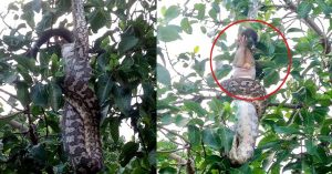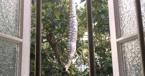 ക്യൂന്സ്ലന്ഡ്: ഒരു ദിവസം രാവിലെ കിടപ്പുമുറിയുടെ ജനാല തുറന്നു നോക്കുമ്പോള് ഒരു കൂറ്റന് പെരുമ്പാമ്പിനെ കണ്ടാല് എങ്ങനെയുണ്ടാകും? ആരും ഞെട്ടുമെന്ന കാര്യത്തില് സംശയമില്ല. ഇങ്ങനെയൊരു സംഭവം നടന്നത് ക്യൂന്സ്ലന്ഡിലാണ്. വെറും പെരുമ്പാമ്പല്ല. ഒരു കൂറ്റന് പെരുമ്പാമ്പ് മരത്തില് തൂങ്ങിയാടി ഇരയെ വിഴുങ്ങുന്ന കാഴ്ചയാണ് രാവിലെ ജനാല തുറന്നപ്പോള് ഡേവിഡ് റൈനോള്ഡ് കണ്ടത്.