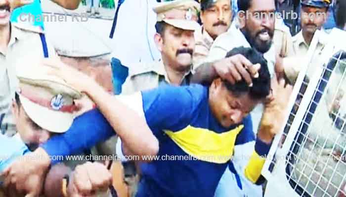ഗവർണർ എത്തുന്നതിന് മുമ്പ് എസ്എഫ്ഐ പ്രവർത്തകർ സ്ഥലത്ത് തമ്പടിച്ചിരുന്നു. സംഭാര സമരവുമായി എത്തിയ പ്രവർത്തകരെ ഗവർണർ എത്തുന്നതിന് മുമ്പ് അറസ്റ്റ് ചെയ്തു. ഇതോടെ പൊലീസും പ്രവർത്തകരും തമ്മിൽ ഉന്തും തള്ളുമുണ്ടായി. നിരവധി പ്രവർത്തകരെ പൊലീസ് ജീപ്പിൽ കയറ്റി. ഇതിനിടെ ഗവർണറുടെ വാഹനം അതുവഴിവന്നു. പിന്നാലെ പൊലീസ് ജീപ്പിൽ ഇരുന്നുകൊണ്ട് തന്നെ പ്രവർത്തകർ കരിങ്കൊടി ഉയർത്തി.
