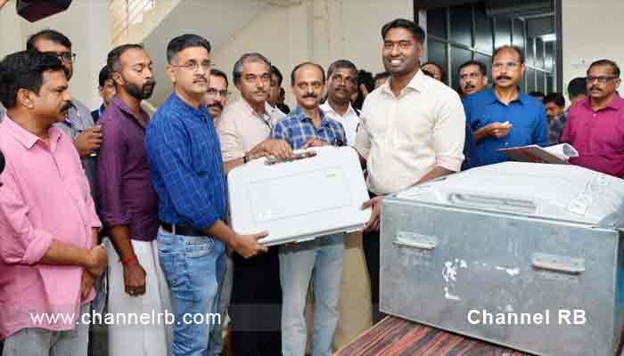 കാസറഗോഡ്: സംസ്ഥാന നിയമസഭാ തിരഞ്ഞെടുപ്പ് 2026 മായി ബന്ധപ്പെട്ട് കാസർകോട് ജില്ലയിൽ ഇലക്ട്രിക് ഇലക്ട്രോണിക് വോട്ടിംഗ് മെഷീനുകളുടെ വിതരണം ആരംഭിച്ചു. തൃക്കരിപ്പൂർ മണ്ഡലത്തിലെ റിട്ടേണിംഗ് ഓഫീസർ വി.ഇ ഷേർളിയും മറ്റു നിയോജക മണ്ഡലങ്ങളിലെ റിട്ടേണിംഗ് ഓഫീസർമാരുടെ പ്രതിനിധികളും ജില്ലാ കളക്ടർ അർജുൻ പാണ്ഡ്യൻ ഐ.എ.എസ് ഇ.വി.എം മെഷീനുകൾ ഏറ്റുവാങ്ങി. ആകെ 1418 ഇ.വി.എമ്മുകളാണ് ജില്ലാ കളക്ടറേറ്റിലെ തിരഞ്ഞെടുപ്പ് കമ്മീഷൻ്റെ വെയർഹൗസിൽ നിന്ന് പ്രത്യേകം തയ്യാറാക്കിയ സ്ട്രോങ്ങ് റൂമുകളിലേക്ക് കൊണ്ടുപോകുന്നത്. ജില്ലയിലെ അഞ്ച് നിയോജകമണ്ഡലങ്ങൾക്കും വേണ്ടി വെയർഹൗസിന് സമീപം പ്രത്യേകം തയ്യാറാക്കിയ സ്റ്റാളുകളിൽ ചുമതലയുള്ള ജീവനക്കാർ അതാത് നിയോജക മണ്ഡലങ്ങൾക്ക് ലഭിക്കുന്ന മെഷീനുകളുടെ എണ്ണവും നമ്പരും കമ്പ്യൂട്ടറിൽ രേഖപ്പെടുത്തി. ഓരോ നിയോജകമണ്ഡലങ്ങൾക്കും അനുവദിച്ചിരിക്കുന്ന നമ്പറിലുള്ള ഇ.വി.എം തന്നെയാണോ ലഭിച്ചതെന്ന് ഈ ജീവനക്കാർ ഉറപ്പുവരുത്തി.