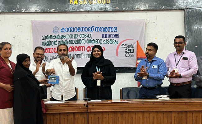 കാസർകോട്: കാസർകോട് നഗരസഭ 2022-23 വാർഷിക പദ്ധതിയിൽ ഉൾപ്പെടുത്തി വാങ്ങിയ ഡിജിറ്റൽ സ്പ്രിംഗ് ബാലൻസും ഐ.സി.ഐ.സി.ഐ. ബാങ്കിൻ്റെ സി.എസ്.ആർ. ഫണ്ട് ഉപയോഗിച്ചുള്ള ഇ-ഓട്ടോകളും ഹരിത കര്മ്മ സേനയ്ക്ക് കൈമാറി. നഗരസഭാ ചെയർമാൻ അഡ്വ. വി.എം. മുനീർ ചടങ്ങ് ഉദ്ഘാടനം ചെയ്തു. നഗരസഭാ വൈസ് ചെയർപേഴ്സൺ ഷംസീദ ഫിറോസ് അദ്ധ്യക്ഷത വഹിച്ചു. വികസനകാര്യ സ്ഥിരം സമിതി ചെയർമാൻ അബ്ബാസ് ബീഗം സ്വാഗതം പറഞ്ഞു. ഹരിത കേരള മിഷൻ കോ-ഓർഡിനേറ്റർ ദേവരാജൻ പി.വി. ബോധവൽക്കരണ ക്ലാസ്സിന് നേതൃത്വം നൽകി.