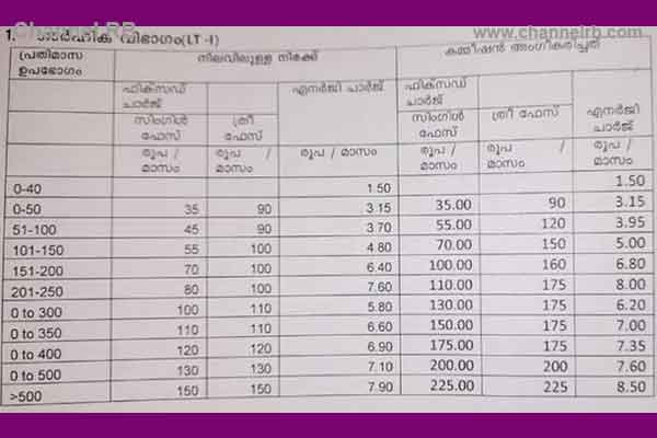 ചെറിയ പെട്ടിക്കടകള്, തട്ടുകടകള് തുടങ്ങിയ വിഭാഗത്തിനുള്ള കുറഞ്ഞ നിരക്കിലുള്ള താരിഫിൻ്റെ ആനുകൂല്യം 1000 വാട്ടില് നിന്നും 2000 വാട്ടായി വര്ധിപ്പിച്ചു. കാര്ഷിക ഉപഭോക്താക്കള്ക്ക് എനര്ജി ചാര്ജ് വര്ധിപ്പിച്ചിട്ടില്ല. 10 കിലോവാട്ട് കണക്ടഡ് ലോഡുള്ള ചെറുകിട വ്യവസായ മേഖലക്ക് ശരാശരി യൂണിറ്റിന് 15 പൈസയാണ് താരിഫില് വര്ധനവ്.
