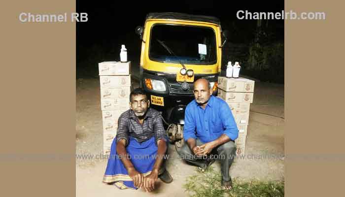 ഓട്ടോ റിക്ഷയിൽ (KL 14 R 2302 നമ്പർ) മദ്യം കടത്തിക്കൊണ്ട് വന്നതിന് മഞ്ചേശ്വരം പേരാൽ- കണ്ണൂർ വില്ലേജിലെ സൂരംബയൽ മാലിങ്ക പാട്ടാളിയുടെ മകൻ നാരായണൻ.എം (58) എന്ന ചീനച്ചട്ടി നാരായണൻ, കാസർകോട് താലൂക്കിൽ മധൂർ വില്ലേജിലെ മധൂർ, ഗണേഷ് നിവാസിൽ മഹാലിംഗ മണിയാണിയുടെ മകൻ കിരൺ കുമാർ.കെ (48) എന്നിവരെ അറസ്റ്റ് ചെയ്തു. പ്രതികളെ കോടതിയിൽ ഹാജരാക്കി.