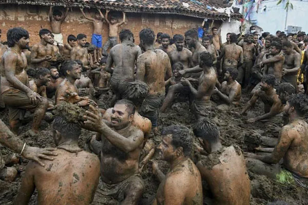 ദീപാവലി ആഘോഷങ്ങളുടെ ഭാഗമായിട്ടാണ് വേറിട്ട ഈ ആഘോഷം. പശുക്കളുള്ള വീടുകളിലെത്തി ചാണകം ശേഖരിച്ച് ട്രക്കുകളില് ഗുമതാപുര ഗ്രാമത്തിലെ ക്ഷേത്രത്തിലെത്തും. പിന്നീട് പുരോഹിതനെത്തി പൂജ നടത്തിയ ശേഷം ചാണകം തുറസായ സ്ഥലത്ത് കൂട്ടിയിടും. ഇതിന് ശേഷം ജനങ്ങള് പരസ്പരം ചാണകം വാരിയെറിയും.