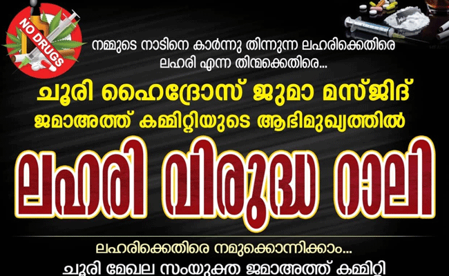 പിടിക്കപ്പെടുന്ന ലഹരി കേസുകളിൽ കൂടുതലും മാരകമായ മയക്കുമരുന്നുകൾ അടക്കമുള്ള ലഹരി വസ്തുക്കൾ കൈവശം വെച്ചവരോ വിൽപ്പന നടത്തിയവരോ ആകുന്നു. സ്കൂൾ വിദ്യാർത്ഥികളെ ലക്ഷ്യംവെച്ചാണ് ഇത്തരക്കാർ ലഹരി വിൽപ്പന നടത്തുന്നത്. ഇതിൽ അകപ്പെട്ട് പോകുന്നത് അറിഞ്ഞോ അറിയാതയോ നമ്മുടെ മക്കളാണ്. അത്കൊണ്ട് തന്നെ നമ്മുടെ നാട്ടിൽ നിന്നും ലഹരിയെ ഉന്മൂലനം ചെയ്യാൻ ഓരോരുത്തരും തയ്യാറാവേണ്ടതുണ്ട്. ഇതിൻ്റെ ഭാഗമായാണ് നാട്ടിൽ മഹല്ല് കമ്മിറ്റിയുടെ ഭാഗമായി ബോധവൽക്കരണം നടത്തുന്നത് എന്ന് മഹല്ല് ഭാരവാഹികൾ പറഞ്ഞു.