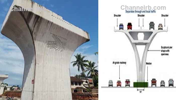 ഇരുഭാഗത്തും തൂണുകള് നിര്മിക്കുകയാണെങ്കില് 60 എണ്ണം വേണം. നാലുമുതല് ഒമ്പതുവരെ മീറ്റര് ഉയരത്തിലാണ് തൂണുകള് നിര്മിക്കുന്നത്. നിലവില് തൂണുകളല്ലാം പൂര്ത്തിയാക്കി മുകള് ഭാഗത്തെ സ്ലാബുകളുടെ പണിയും ഏറെക്കുറേ പൂര്ത്തിയായി. ഇനി മൂന്നു സ്പാനുകളുടെ പണി മാത്രമാണ് പൂര്ത്തിയാകാനുള്ളത്. ആദ്യഘത്തില് പൂര്ത്തിയായ സ്പാനുകളില് ടാറിങും കഴിഞ്ഞിട്ടുണ്ട്. സാധാരണ നിര്മിക്കുന്ന രണ്ട് തൂണുകളുടെതിനേക്കാള് ചുറ്റളവിലാണ് ഒറ്റതൂണ് നിര്മിച്ചിരിക്കുന്നത്.