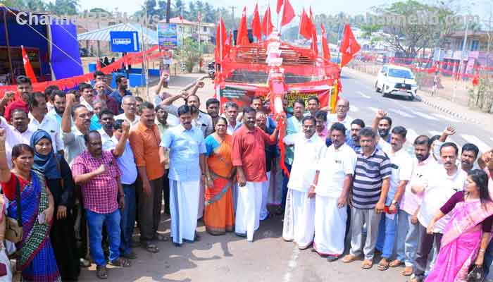 കൊടിമര ജാഥ രാവിലെ പൈവളിഗെ രക്തസാക്ഷി നഗറിൽ നിന്നും ആരംഭിച്ചു. ഉദുമ എം.എൽ.എ സി.എച്ച് കുഞ്ഞമ്പു കൊടിമരം കൈമാറി ഉദ്ഘാടനം ചെയ്തു. സംസ്ഥാന വൈസ്. പ്രസിഡണ്ട് മദന മോഹനൻ ടി.വി ജാഥ ക്യാപ്റ്റനും, സംസ്ഥാന കമ്മിറ്റി അംഗം കെ.പി ഹരിദാസൻ വൈസ്. ക്യാപ്റ്റനുമാണ്.