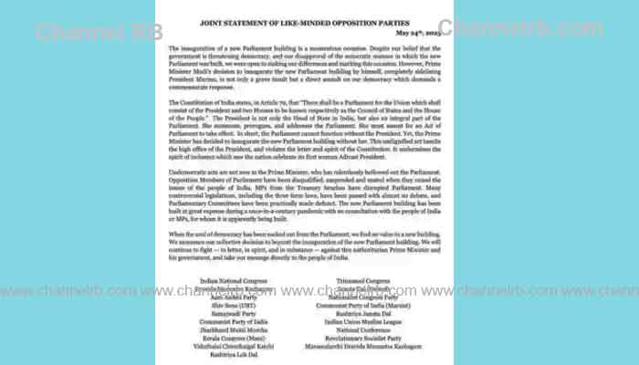 ന്യൂഡല്ഹി: പാര്ലമെണ്ട് മന്ദിര ഉദ്ഘാടനം പ്രതിപക്ഷ പാര്ടികള് ഒന്നടങ്കം ബഹിഷ്കരിക്കും. മെയ് 28ന് നടക്കുന്ന ഉദ്ഘാടനം ബഹിഷ്ക്കരിക്കുമെന്ന് സംയുക്ത പ്രസതാവനയിലൂടെ ആണ് പ്രതിപക്ഷ പാര്ടികള് അറിയിച്ചത്. കോണ്ഗ്രസ്, സി.പി.ഐ (എം), സി.പി.ഐ, ഡി.എം.കെ, ആം ആദ്മി പാര്ടി, ശിവസേന തുടങ്ങിയ 19 പാര്ടികളാണ് സംയുക്ത പ്രസ്തവന പുറപ്പെടുവിച്ചത്.