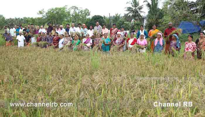 ഉദുമ(കാസറഗോഡ്): പാലക്കുന്ന് ഭഗവതി ക്ഷേത്ര കഴകത്തിൻ്റെ പരിധിയിൽ വരുന്ന ചേറ്റുകുണ്ട് കീക്കാൻ മീത്തൽ വീട് തറവാട് വയനാട്ടുകുലവൻ ദേവസ്ഥാനത്ത് 2026 ഏപ്രിലിൽ നടക്കുന്ന വയനാട്ട് കുലവൻ തെയ്യംകെട്ട് മഹോത്സവത്തിന് കൂവം അളക്കുന്നതിന് ആവശ്യമായ നെല്ല് തറവാട് കമ്മിറ്റി അംഗങ്ങളുടെയും മറ്റ് ഭക്തജന കൂട്ടായ്മയുടെയും നേതൃത്വത്തിൽ കൂട്ടായ പരിശ്രമത്തിലൂടെ കൃഷി ചെയ്ത് സ്വാശ്രയത്തിലൂടെ നല്ല വിളവ് ലഭിച്ചു. ഈ അത്യാഹ്ലാദ നിമിഷത്തിൽ നെൽകൃഷിയുടെ വിളവെടുപ്പ് ഉത്സവാന്തരീക്ഷത്തിൽ 2025 ഒക്ടോബർ 22ന് ബുധനാഴ്ച രാവിലെ ചേറ്റുകുണ്ട് റെയിൽവേ ലൈനിൻ്റെ പടിഞ്ഞാറ് വശത്തായുള്ള ആവിയിൽ പാടശേഖരത്ത് നടന്നു. രണ്ട് ഏക്കറോളം വയലിലാണ് നെൽ കൃഷിയിൽ നിന്നും നൂറുമേനി വിളവ് ലഭ്യമായിരിക്കുന്നത്. തറവാട് സന്നിധിയിൽ കെ.വി.ജ്യോതിഷ് കാരണവരുടെ നേതൃത്വത്തിൽ നടന്ന കൂട്ട പ്രാർത്ഥനയ്ക്ക് ശേഷം ചേറ്റുകുണ്ട് ആവിയിൽ പാട ശേഖരത്തിൽ പാലക്കുന്ന് ഭഗവതി ക്ഷേത്ര വൈസ് പ്രസിഡണ്ട് കെ.വി. അപ്പു കൊയ്ത്തുൽസവം ഉദ്ഘാടനം ചെയ്തു.
