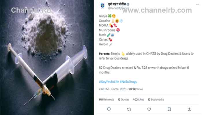 ജൂണ് 26 ലോക ലഹരിവിരുദ്ധ ദിനാചരണത്തിന് മുന്നോടിയായി നടത്തിയ ബോധവല്ക്കരണത്തിൻ്റെ ഭാഗമായാണ് പൂനെ പോലീസ് ഈ ട്വീറ്റ് പങ്കുവെച്ചത്. അതേസമയം ഈ വര്ഷം ജനുവരിഒന്ന് മുതല് പൂനെ സിറ്റി പോലീസ് പിടികൂടിയ 58 മയക്കുമരുന്ന് കേസുകളില് കഞ്ചാവ്, മെഫെഡ്രോണ്, കൊക്കെയ്ൻ, ഹാഷിഷ്, പോപ്പി ഹസ്ക്, ഒപ്പിയം, കാത്ത എഡുലിസ്, എം.ഡി.എം.എ (എക്സ്റ്റസി), ബ്രൗണ് ഷുഗര്, മാജിക് മഷ്റൂം എന്നിങ്ങനെ അറിയപ്പെടുന്ന വിവിധ തരത്തിലുള്ള നിരോധിത മയക്കുമരുന്ന് വസ്തുക്കളാണ് ഉള്പ്പെട്ടിട്ടുള്ളത് . ഇതിന് പുറമേ 7.28 കോടി രൂപയുടെ ഹാഷിഷ് ഓയിലും എല്.എസ്.ഡിയും പോലീസ് പിടിച്ചെടുത്തിരുന്നു. മയക്കുമരുന്ന് കേസുമായി ബന്ധപ്പെട്ട 82 പ്രതികളാണ് പോലീസിൻ്റെ പിടിയിലായത്.