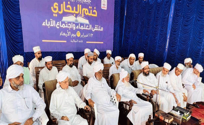 ദേളി/ കാസർകോട് : വിശുദ്ധ ഗ്രന്ഥമായ സഹീഹുല് ബുഖാരി ക്ലാസിന് സമാപനം കുറിച്ച് കൊണ്ട് നടന്ന ഖത്മുല് ബുഖാരി സംഗമത്തിന് സമസ്ത പ്രസിഡന്റ് റഈസുല് ഉലമ ഇ സുലൈമാന് മുസ്ലിയാര് നേതൃത്വം നല്കി. ശരീഅത്ത് കോളേജ് പ്രിന്സിപ്പല് എ. പി അബ്ദുല്ല മുസ്ലിയാര് മാണിക്കോത്ത് അധ്യക്ഷത വഹിച്ചു. സയ്യിദ് ഇസ്മായില് ഹാദി പാനൂര് പ്രാര്ത്ഥന നടത്തി.