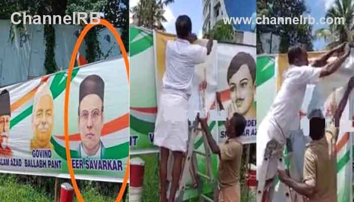 കൊച്ചി: രാഹുല് ഗാന്ധിയുടെ ജോഡോ യാത്രയെ വരവേല്ക്കാന് ആര്.എസ്.എസ് സൈദ്ധാന്തികനും ഗാന്ധി വധകേസ് പ്രതിയുമായ വി.ഡി സവര്ക്കറുടെ ചിത്രത്തോടെ വലിയ കമാനം. ആലുവ മണ്ഡലത്തില് നെടുമ്പാശേരി എയര്പോര്ട് ജംഗ്ഷന് സമീപം കോട്ടായിയില് ദേശീയപാതയില് കോണ്ഗ്രസ് ചെങ്ങമനാട് മണ്ഡലം കമ്മിറ്റി സ്ഥാപിച്ച ബാനറിലാണ് സ്വാതന്ത്ര്യ സമരസേനാനികള്ക്ക് ഒപ്പം സവര്ക്കറും സ്ഥാനം പിടിച്ചത്. ഇതിനെതിരെ പ്രതിഷേധം ശക്തമായതോടെ മഹാത്മാ ഗാന്ധിയുടെ ചിത്രം തൂക്കി സവര്ക്കറുടെ ചിത്രം മറച്ചു.