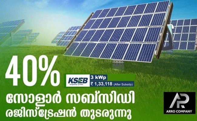 സോളാർ ഘടിപ്പിക്കുന്ന വീട്ടുകാർക്ക് 40% സബ്സീഡിയാണ് നിലവിൽ സർക്കാർ നൽകുന്നത്. ഇതോടെ വീടുകളിൽ സോളാർ ഫിറ്റ് ചെയ്യുന്നവരുടെ എണ്ണം വർദ്ധിച്ചിട്ടുണ്ട്. മൂന്ന് കിലോ വാറ്റ് (3kwp) പവർ അടിസ്ഥാനത്താലാണ് വീടുകളിൽ സാധാരണ നിലയിൽ സോളാർ ഫിറ്റ് ചെയ്യുന്നത്. വലിയ കെട്ടിടങ്ങൾക്ക് ആവശ്യാനുസരണം സോളാർ ഫിറ്റ് ചെയ്യലാണ് പതിവ്. വീടുകളുടെയും കെട്ടിടങ്ങളുടെയും ഉപയോഗം അനുസരിച്ചാണ് ആവശ്യാനുസരണം സോളാർ ഫിറ്റ് ചെയ്തു നൽകുന്നത് എന്ന് കാസർകോട് ജില്ലയിലെ വിവിധ ഇടങ്ങളിൽ സോളാർ പാനൽ ഫിറ്റ് ചെയ്തു നൽകുന്ന ARRO കമ്പനി പ്രതിനിധി റോഷൻ മുഹമ്മദ് പറഞ്ഞു.