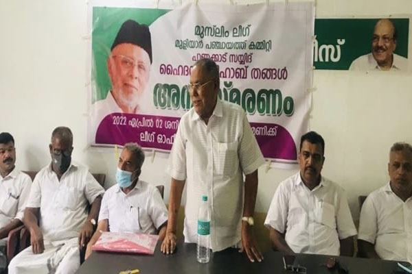 മുളിയാർ/ കാസർകോട്: മുളിയാർ പഞ്ചായത്ത് മുസ്ലിം ലീഗ് കമ്മിറ്റിയുടെ നേതൃത്വത്തിൽ പാണക്കാട് സയ്യിദ് ഹൈദരലി ശിഹാബ് തങ്ങൾ അനുസ്മരണം നടത്തി. ജില്ലാ വൈസ് പ്രസിഡണ്ട് എം.എസ്. മുഹമ്മദ് കുഞ്ഞി ഉദ്ഘാടനം ചെയ്ത ചടങ്ങിൽ പഞ്ചായത്ത് പ്രസിഡണ്ട് കെ.ബി. മുഹമ്മദ് കുഞ്ഞി അധ്യക്ഷത വഹിച്ചു.